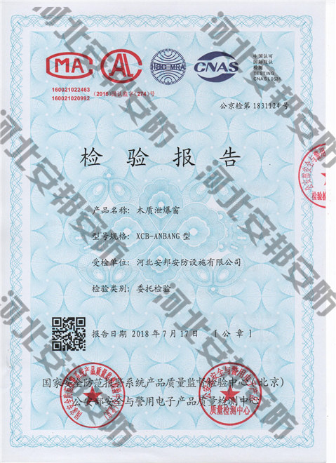 木質(zhì)泄爆窗檢驗報告