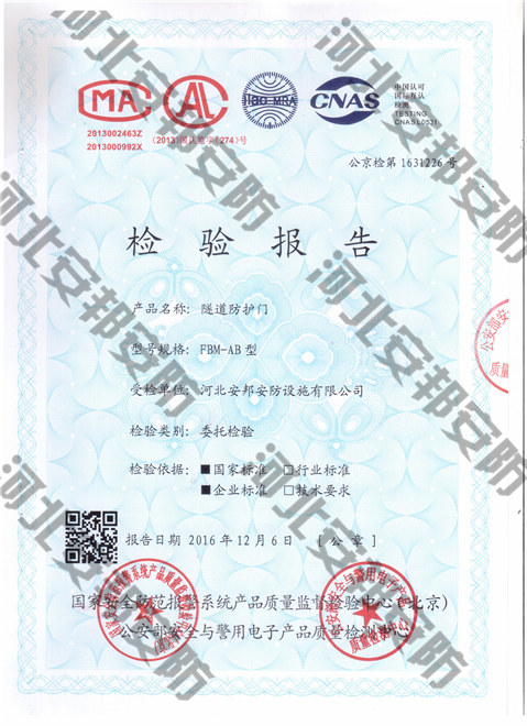 隧道防護(hù)門(mén)檢驗(yàn)報(bào)告
