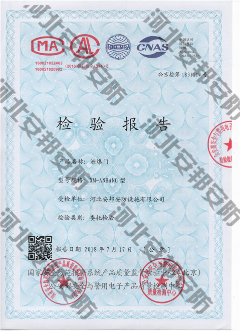 泄爆門(mén)檢驗(yàn)報(bào)告